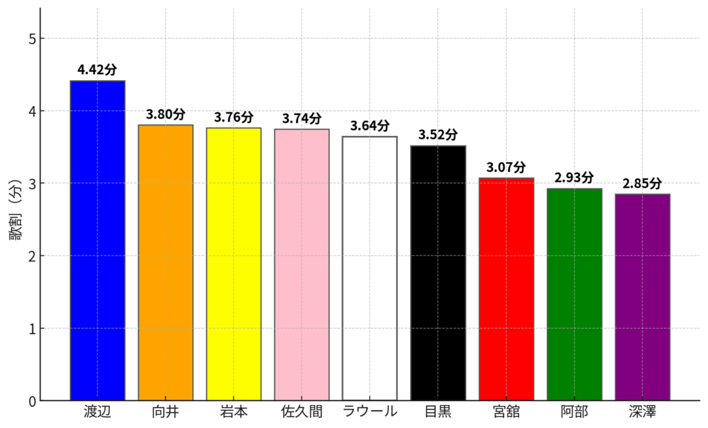 サビ以外のパートの歌割時間は以下のようになりました。
