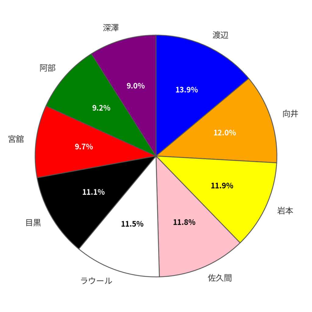 大人数グループの中では、比較的バランスの取れたパーセントのように思います。