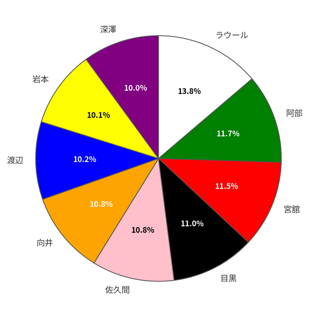 歌割のパーセントは以下のようになりました。